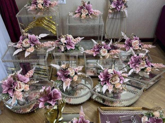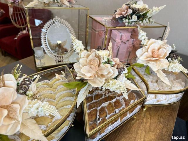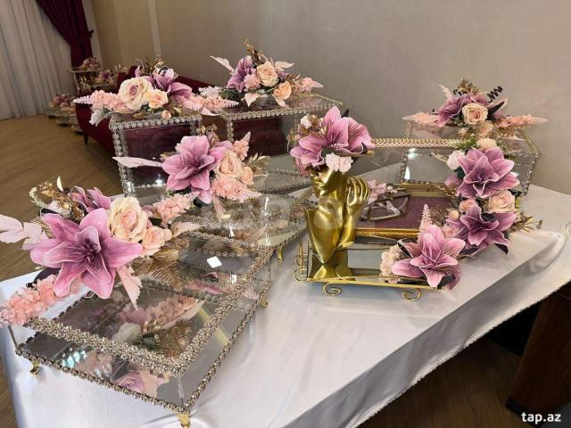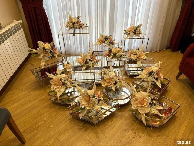Satışda solmayan gəlin buketləri, güzgülər və digər aksesuarlar da mövcuddur.